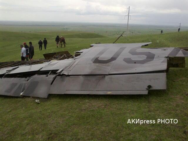 The aircraft, carrying three crewmembers, came down at 14:55 local time in the Panfilov district, between the villages of Cholok-Arik and Chorgolu, some 90km west of Bishkek, near the border with Kazakhstan.